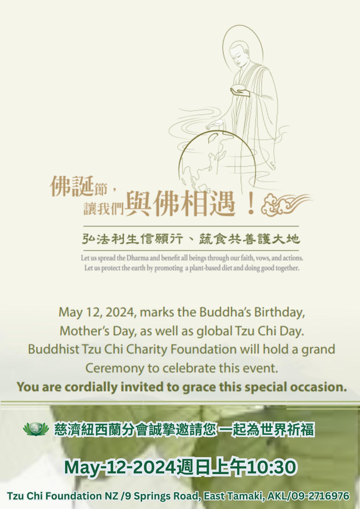 May 12,2024 , marks the Buddha;s Birthday, Mother’s Day, as well as global Tzu Chi Day. Buddhist Tzu Chi Charity Foundation will hold a grand Ceremony to celebrate this event.